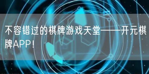 在繁忙的生活节奏中,你是否渴望找到一片属于自己的娱乐天地?那么,不容错过的棋牌游戏天堂——开元棋牌APP,绝对是你的最佳选择!这里,你可以尽情享受各类棋牌游戏带来的乐趣,与来自全国各地的玩家一决高下,展现你的实力与智慧。
