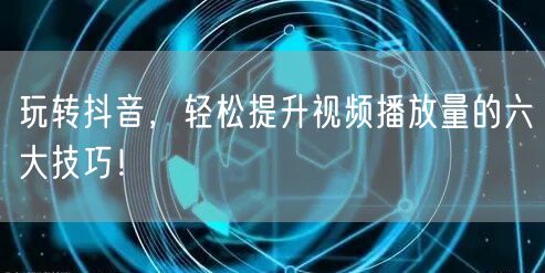 总之,玩转抖音并非难事。只要掌握以上六大技巧,轻松提升视频播放量。不断优化内容,吸引更多观众关注,成为抖音达人!