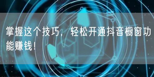 总之,掌握这个技巧,轻松开通抖音橱窗功能赚钱!只要你积极努力,不断优化自己的橱窗展示和销售策略,就能在抖音上实现自己的电商梦想。