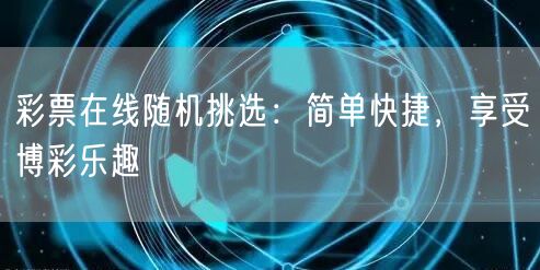 总之,彩票在线随机挑选,让你以简单快捷的方式享受博彩乐趣。让我们一起体验这份独特乐趣吧!