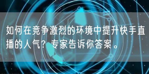 随着互联网的快速发展,直播行业逐渐壮大,竞争也变得愈发激烈。如何在快手直播这个平台上提升人气,吸引更多观众,成为众多主播面临的挑战。本篇文章将为你请来行业专家,揭示提升快手直播人气的秘诀。