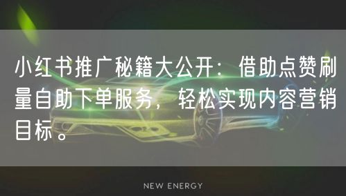 小红书推广秘籍大公开:借助点赞刷量自助下单服务,轻松实现内容营销目标。